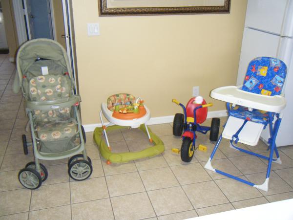Our property management service is available 24 hours a day for emergency service on our property. Available for use is a DVD collection of over 50 videos. For families with small children, a high chair, pack-n-play, stroller and umbrella stroller are on-site for your use.