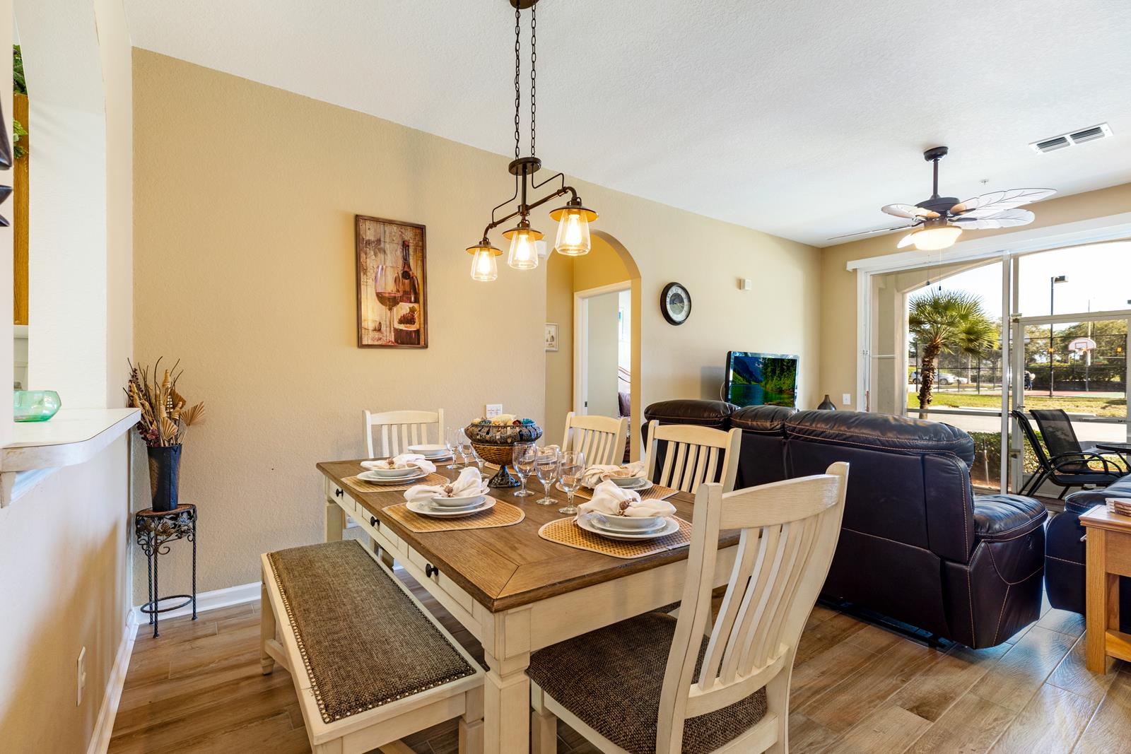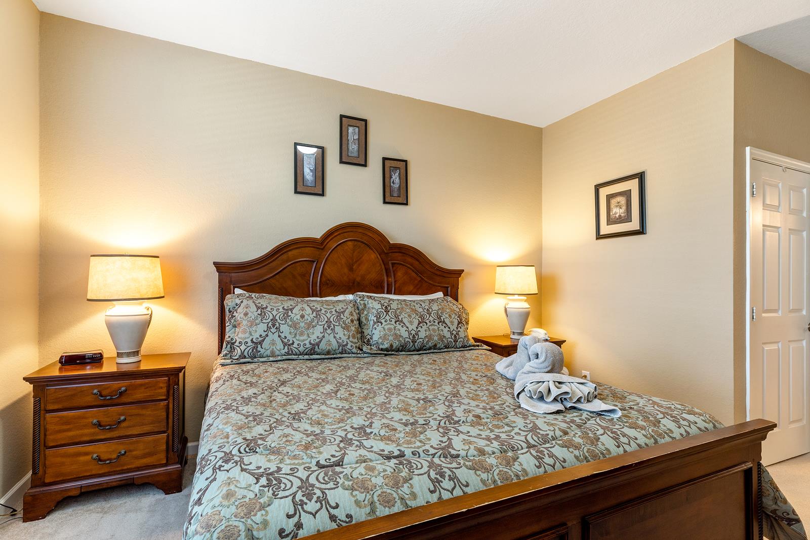 This 3 bedroom, 2 bathroom newly redecorated luxury unit comes equipped with everything you need for a comfortable stay. Fully-equipped kitchen, full-size washer and dryer in unit, DSL, vacuum cleaner, port-a-crib, high chair, and ironing board. Living room has a 46 inch TV and DVD player. The condominium has a screened in porch, is on the first floor and is very close to the pool and clubhouse. Master bedroom has a King size bed, full bath, walk-in closet, and a 20 inch TV. The second bedroom has a queen bed, double closet, and a 19 inch TV. The third bedroom has a set of twin beds, double closet, and a 22 inch TV. A crib is also stored in the master bedroom closet for our guest use.