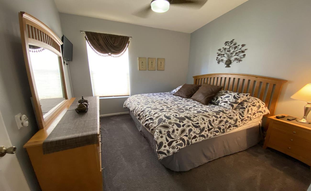 Master bedroom has a king bed, large flat screen tv with Netflix, large walk in closet, and en suite bathroom with large walk in shower, large soaker tub and his and hers sinks. The separate toilet can be accessed from the pool area. The second master has another king bed, closet, flat screen tv, en suite bathroom with a large walk in shower as well. The third bedroom is in a Mickey Mouse theme twin bedroom and has a wall mounted flat screen tv. The fourth bedroom is in a Safari theme with a bunk bed and flat screen tv. The third bathroom has a shower tub with sliding glass doors. All doors leading on to the deck area have been provided with additional safety locks and switch-able alarm plus a child safety fence.