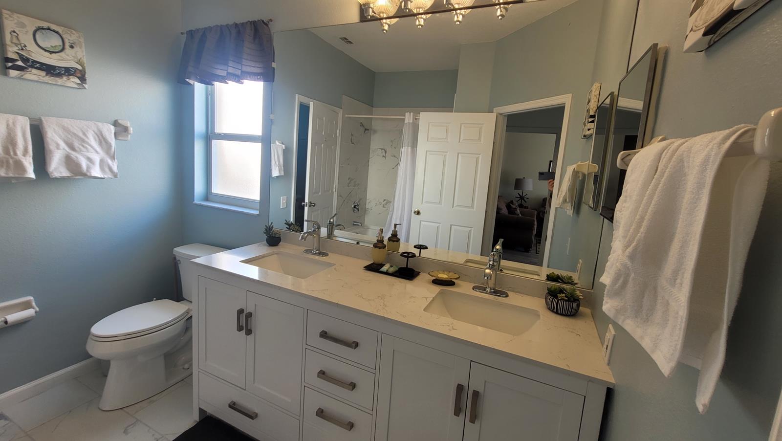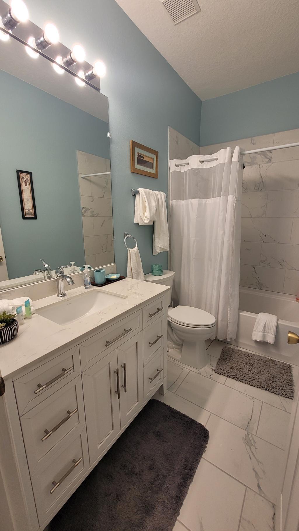 Located in the 5 star gated (guarded) resort of Windsor Palms, this recently renovated 4 bedroom home is minutes away from Disney World, Universal Studios, and other major attractions. You'll find all the comforts of home including a private pool, flat screen HDTVs, Netflix, Disney+, DVDs, XBOX 360 and N64, and a games room with pool table and foosball. Free wifi internet and long distance to the US and Canada. There are accommodations for up to 8 people with 4 bedrooms including a Queen master suite, Queen bedroom, a room with two twin beds, and one with bunkbeds. Our kitchen and dining room are fully furnished for you to choose when to eat in or to eat out. Our spacious living room is a great place to gather together and watch a favorite movie. BBQ grills, laptop computers and childcare accessories are available for rent throughout your stay. For those with young children, we have a stroller, pack&n play, and booster chair for use during your stay. Babysitting services are also available. In the resort for your enjoyment is tennis, volleyball and basketball courts, playground, large community pool and hot tub, fitness center, 58 seat 3D movie theater (free), internet cafe, business facilities and a games room. Don't feel like driving to the Orlando attractions? A shuttle service is available for a nominal fee. The Mystic Dunes Golf Course is across the street and within 2 miles are 4 other courses: Reunion, Celebration, Orange Lake and Falcon Fire. The Jungle minigolf down the road is a family favorite.